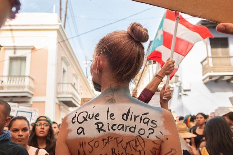 Anamar Perez Green’s image went viral over instagram where she used her naked body as a canvas to represent the national flag of Puerto Rico burning. On her back, words used by the ex-governor in the controversial group chat where he demeaning to women. Anamar is now known es a revolutionary icon in the modern day activism in Puerto Rico her message and courage spoke to many people.